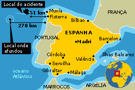 19.11.02 . O navio não resiste, parte-se em dois e naufraga, cerca de 20 milhas ao largo do Cabo Finisterra. As manchas de fuel na água atingem uma grande dimensão, tornando claro que a maré negra seria inevitável.