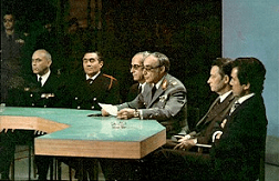 Cerca da 01h25, Spínola, acompanhado pelos restantes membros da formada .Junta de Salvação Nacional. (Rosa Coutinho, Pinheiro de Azevedo, Costa Gomes, Jaime Silvério Marques e Galvão de Melo . sendo que Diogo Neto se encontrava em Moçambique), procede a comunicação ao país do programa da “Junta” (ver em “entrada estendida”).