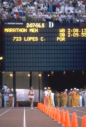 Portugal, com uma comitiva de 39 atletas, conquistaria a sua primeira medalha de ouro da história das Olimpíadas, com Carlos Lopes a sagrar-se Campeão Olímpico da Maratona, numa histórica madrugada, percorrendo os 42,195 km da prova em 02h09m21s, ainda hoje (20 anos decorridos), record olímpico!
