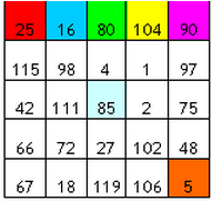 Poderá facilmente confirmar-se que (para além das 25 linhas e das 25 colunas…) também as 25 “pilhas” verticais somam (cada uma delas) o total de 315: