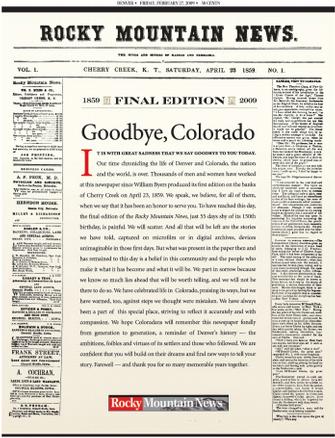 A poucos dias de completar o seu 150º aniversário, o Rocky Mountain News – jornal publicado em Denver, nos EUA – teve hoje a sua última edição.