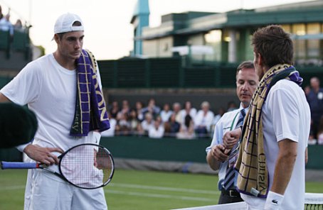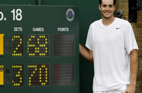 John Isner (23ª “cabeça-de-série”) venceu a primeira partida por 6-4, perdendo de seguida por 3-6 e 6-7, voltando a triunfar no 4º set, por 7-6. Após 2 tie-breaks, e não estando prevista esta fórmula de desempate no set decisivo no Torneio de Wimbledon, os tenistas têm enfrentado uma aparentemente interminável 5ª partida, já com mais de 7 horas, superando os records de set e encontro mais longos de toda a história do ténis.