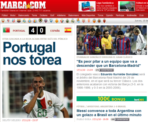 Imagens da maior vitória de sempre da selecção de Portugal sobre a da Espanha, Campeã Mundial e Europeia em título