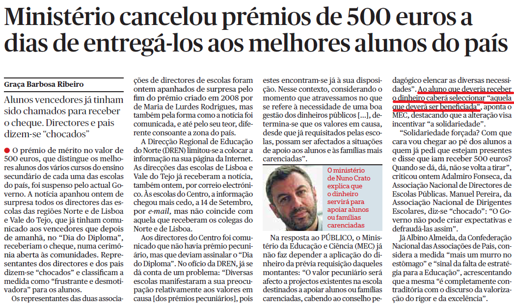 «Um incumprimento que desqualifica o Estado» / «[…] alunos a quem os 500 euros acabam de ser surripiados»