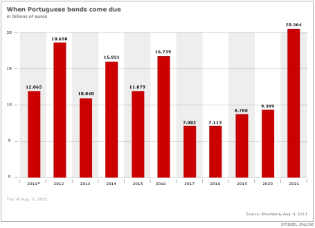 A dívida pública de Portugal ascende a cerca de 160 mil milhões de euros (1/4 da dívida da Espanha, ou menos de 10 % da dívida da Itália). A dívida pública da Grécia ascenderá a algo em torno de 350 mil milhões de euros.