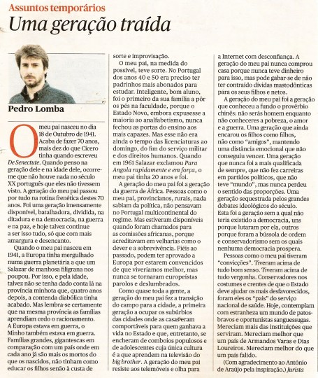 É também dele um pedacinho do texto de Pedro Lomba, a quem aqui agradeço por estas memórias.