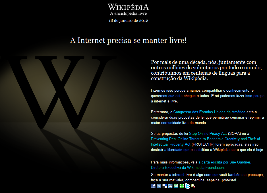 O dia do “apagão” em prol da Internet “livre e aberta” (ver artigo no Público).