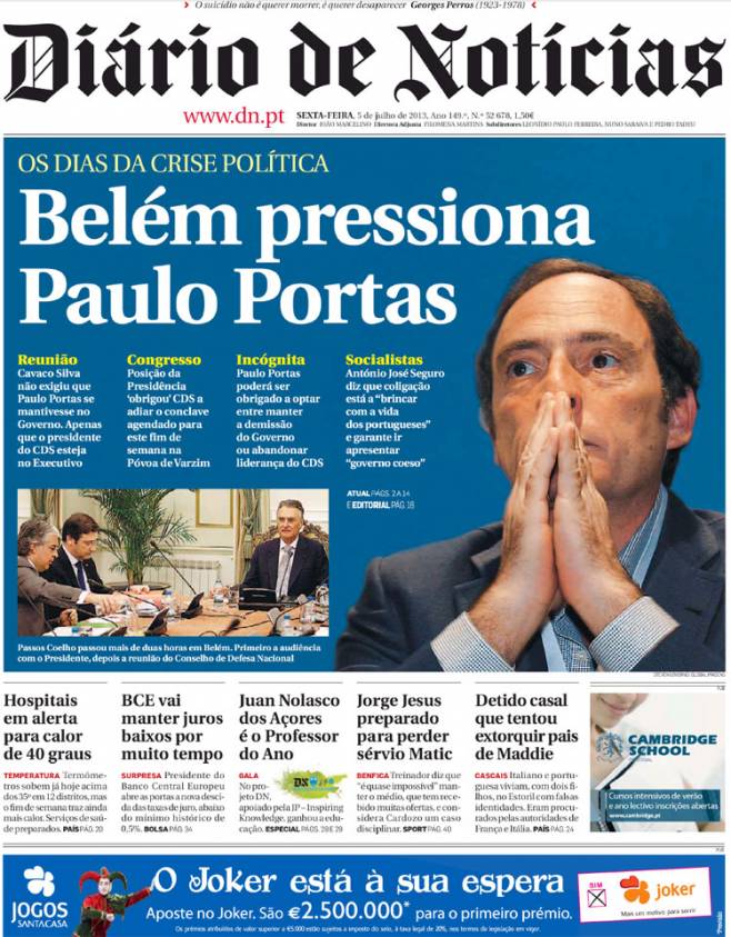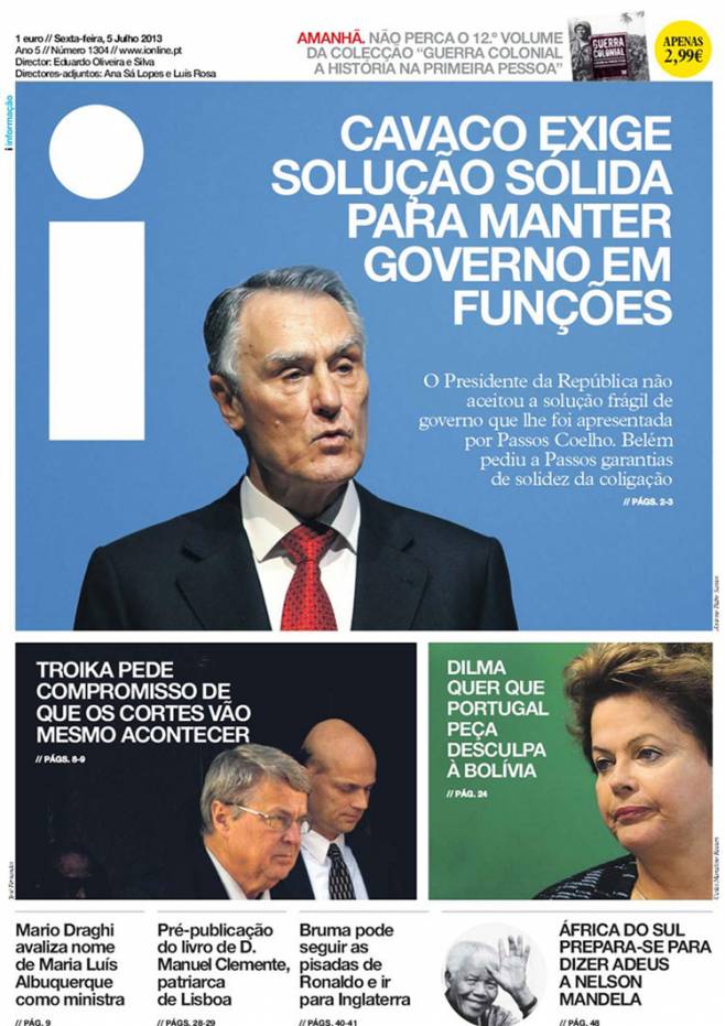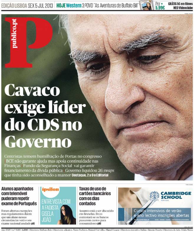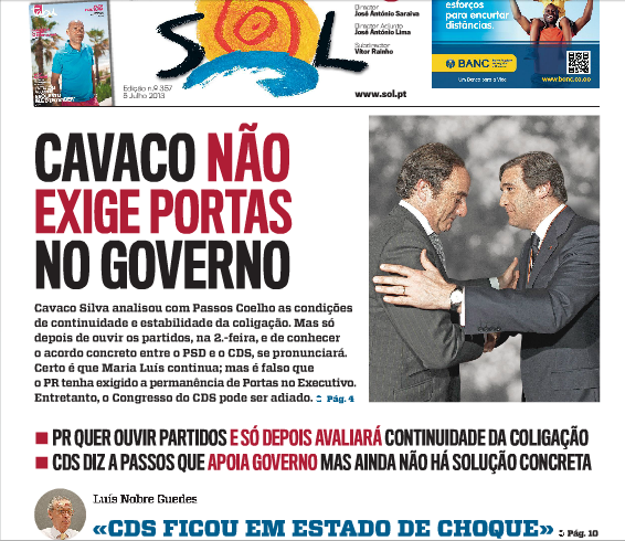 – «Cavaco não exige Portas no Governo» (Económico)
