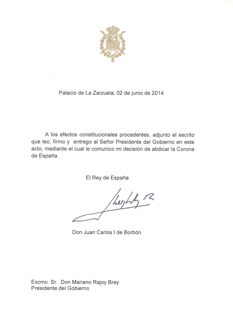 Rei Juan Carlos I abdica da Coroa de Espanha
