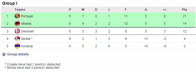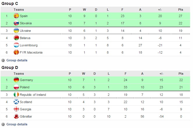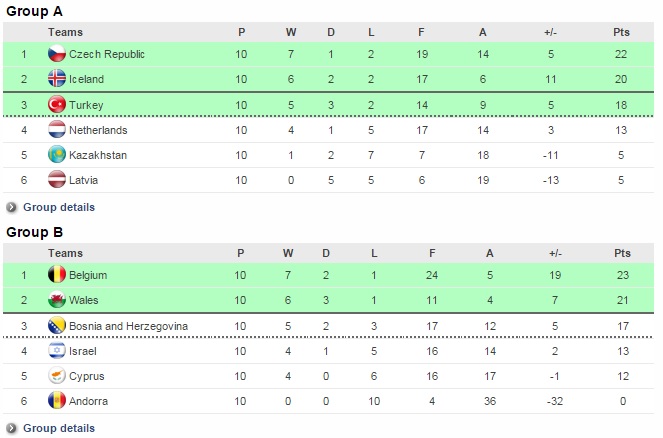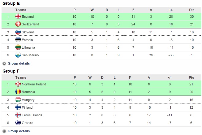 Campeonato Europeu de Futebol 2016 – Fase de Qualificação – Classificação final