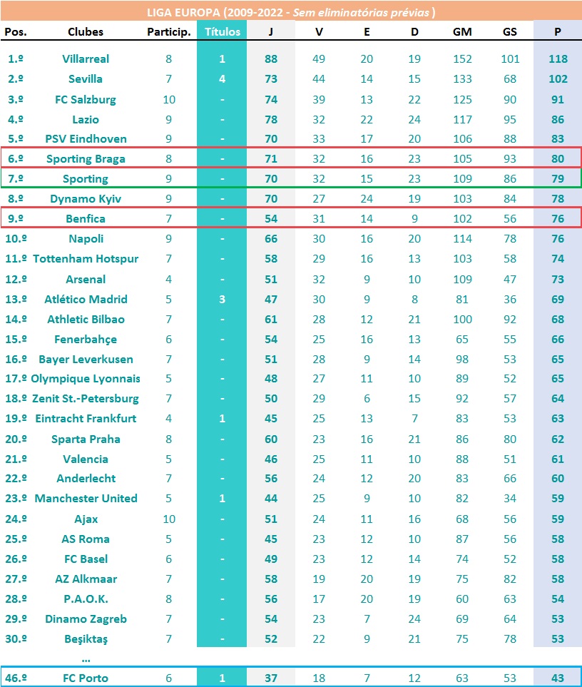 No Palmarés da prova, após as 13 edições já disputadas sob o formato de “Liga Europa”, é a seguinte a lista de vencedores: Sevilla (2014, 2015, 2016 e 2020), At. Madrid (2010, 2012 e 2018), Chelsea (2013 e 2019), FC Porto (2011), Manchester United (2017), Villarreal (2021) e Eintracht Frankfurt (2022).