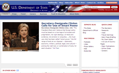 P. P. S. Ainda outras imagens da vitória de Barack Obama, em diversos sites (via Tiago Dória Weblog), e também em slideshow (Innovative Interactivity – How news organizations declared Obama next president), recurso igualmente utilizado para retratar a forma como foi vista esta eleição na Internet (The Election on the Web – a slideshow e Poynter).