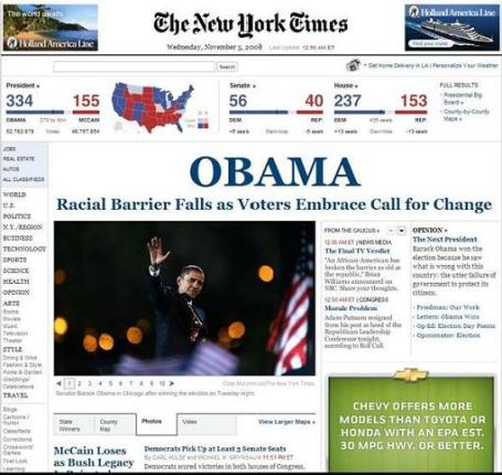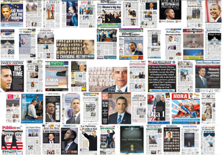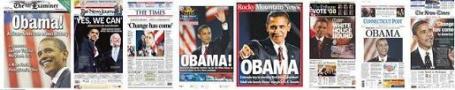 Ainda a propósito da vitória de Barack Obama nas eleições presidenciais nos EUA, um impressionante friso de primeiras páginas de jornais!