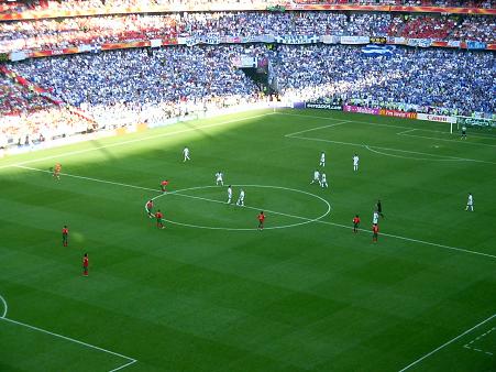 Portugal . A melhor classificação de sempre, numa prova que começou mal, com uma (então) surpreendente derrota com a Grécia, que nos colocou em posição difícil. Quando se iniciou o jogo com a Rússia, após o termo do Espanha-Grécia, sabia-se já que Portugal teria a absoluta necessidade de vencer os 2 jogos que lhe restavam na Fase de Grupos. A partida com a Rússia seria sofrida, mostrando uma equipa com uma imensa intranquilidade… Que surgiria completamente transfigurada no jogo decisivo com a Espanha, o jogo do “mata-mata”. Uma atitude notável, um pouco de felicidade e Portugal embalaria para uma excelente carreira. A perder desde o início do jogo com a Inglaterra, mostrou grande personalidade, tendo força anímica para lutar até ao fim, no jogo mais empolgante da prova. A vitória frente à Holanda seria a consequência natural de uma dinâmica de vitória que parecia imparável… Não conseguindo manter o elevado nível competitivo, Portugal assumiu, ainda assim, o favoritismo que lhe era atribuído para a Final, procurando sempre o golo… que não chegaria. [E isto depois de uma série record de 10 jogos consecutivos sempre a marcar em Fases Finais dos Europeus. A propósito, atente-se nas fotos – de lances de suposto perigo, como cantos ou livres -, com os 11 gregos dentro da sua área, e com rígidas marcações “homem-a-homem”…].