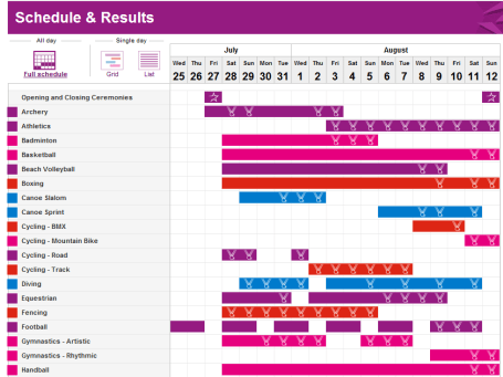 (clicar na imagem para ver o calendário completo dos Jogos Olímpicos – Londres – 2012, que têm hoje o seu início)