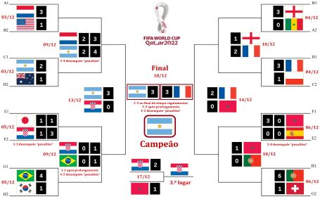O resto é história: a formação sul-americana teve absoluta competência, convertendo em golo todas as suas quatro tentativas; apesar de Mbappé ter marcado por quatro vezes nesta final (três delas da marca de grande penalidade, incluindo a do desempate), mais uma brilhante defesa de Martínez e o remate ao lado de Tchouaméni fizeram pender a decisão para a Argentina, na definitiva consagração de Lionel Messi: Campeão Olímpico, Campeão Sul-Americano, vencedor da “Finalíssima” (frente ao Campeão Europeu), enfim Campeão do Mundo!