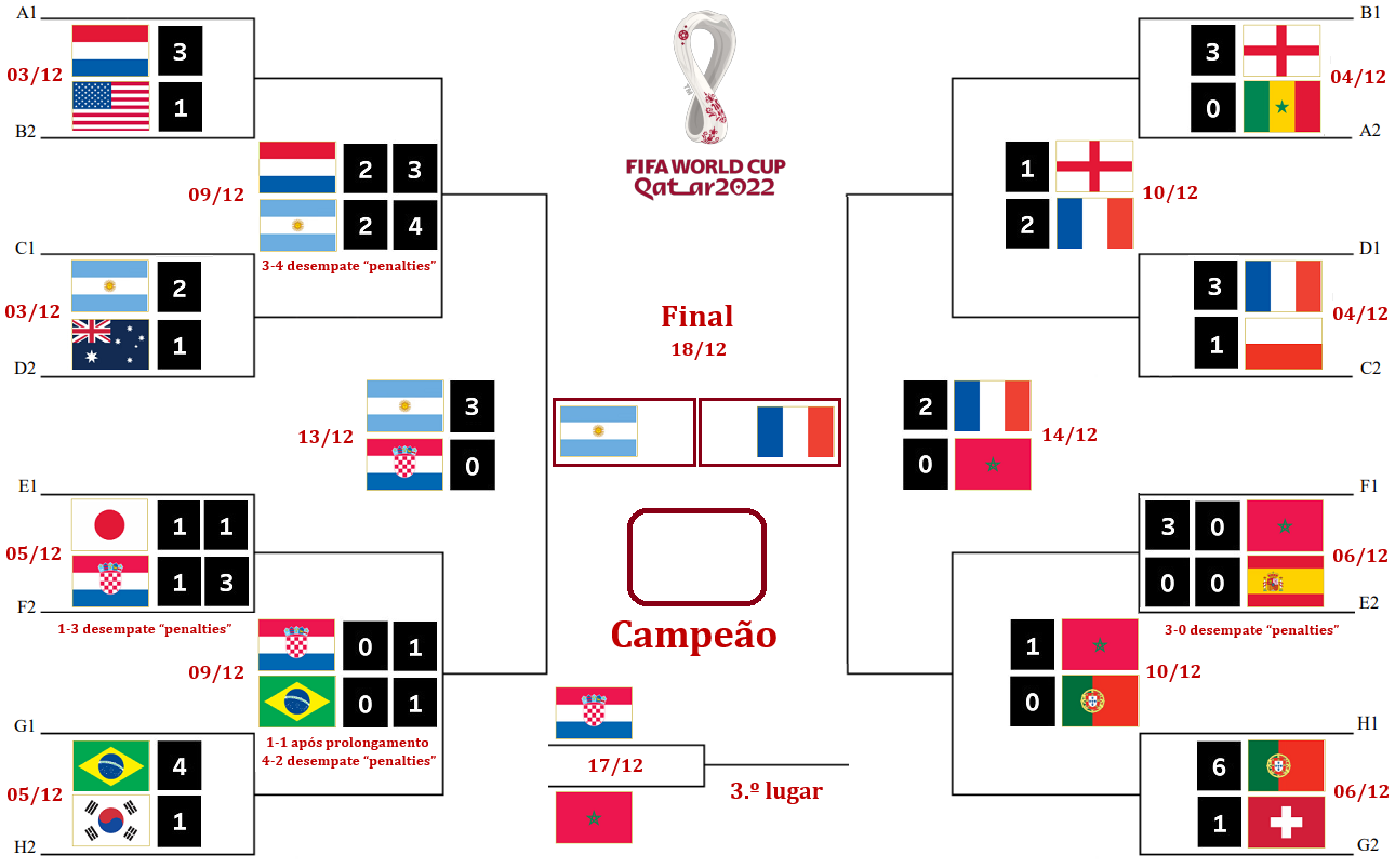 O resto é história: a formação sul-americana teve absoluta competência, convertendo em golo todas as suas quatro tentativas; apesar de Mbappé ter marcado por quatro vezes nesta final (três delas da marca de grande penalidade, incluindo a do desempate), mais uma brilhante defesa de Martínez e o remate ao lado de Tchouaméni fizeram pender a decisão para a Argentina, na definitiva consagração de Lionel Messi: Campeão Olímpico, Campeão Sul-Americano, vencedor da “Finalíssima” (frente ao Campeão Europeu), enfim Campeão do Mundo!