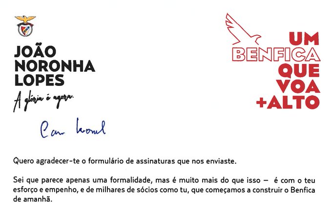 Completei, este ano, 30 anos de sócio do Benfica. Por um Benfica “que voa mais alto”, para um novo rumo, e pela recuperação da credibilidade e dos princípios, o meu voto amanhã, é, obviamente, na equipa liderada por João Noronha Lopes!