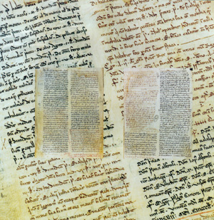 Graças à sua resistência e grande capacidade de se manter inalterado ao longo de séculos, o pergaminho – feito a partir da pele de animais – constituir-se-ia como suporte básico de escrita durante toda a Idade Média, quer a nível de livros, quer de documentos. Tornaram-se então famosos os palimpsestos – etimologicamente, derivando das palavras gregas palin (“outra vez”) e psan (“raspar”) –, traduzindo que o pergaminho fora raspado (para apagar o texto inicial) e reescrito.