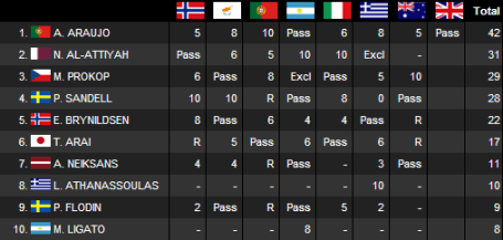 1º Sébastien Loeb - Citroen C4 ___________ 11:38 ___ 3:51:00 2º Mikko Hirvonen - Ford Focus RS ________ 11:36 ___ 3:51:24 3º Daniel Sordo - Citroen C4 _____________ 11:47 ___ 3:52:48 4º Petter Solberg - Citroen Xsara ________ 11:44 ___ 3:53:44 5º Henning Solberg - Ford Focus RS _______ 12:16 ___ 3:56:50 6º Mads Ostberg - Subaru Impreza _________ 11:56 ___ 3:57:19 7º Federico Villagra - Ford Focus RS _____ 12:25 ___ 4:03:57 8º Khalid Al Qassimi - Ford Focus RS _____ 12:14 ___ 4:09:18 9º Armindo Araújo - Mitsubishi Lancer ____ 13:05 ___ 4:13:09 10º Eyvind Brynildsen - Mitsubishi Lanc. _ 12:40 ___ 4:14:15